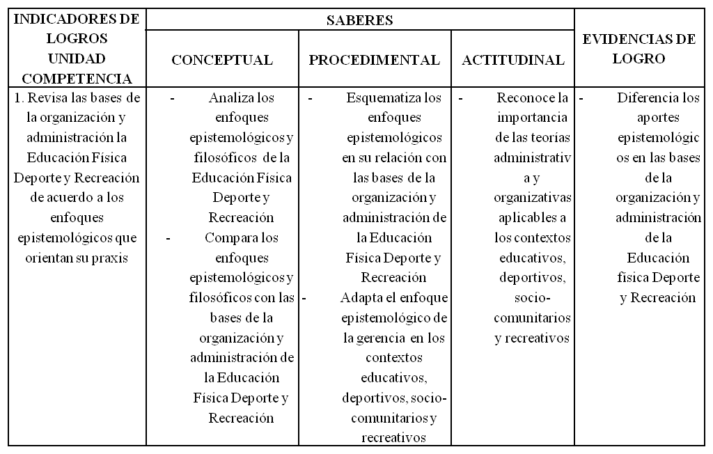 Asocia en forma analítica las diferentes teorías administrativas y de la práctica gerencial que orienta el pensamiento de las organizaciones, transferible a la organización y administración de la Educación Física, Deporte y Recreación, que apuntalan hacia el abordaje de procesos de planeación y gestión estratégica y acceden a la vinculación con personas y su liderazgo, materiales, equipos e instalaciones, a fin de obtener el éxito de la gestión, con confianza en sí mismo, amor por el trabajo, capacidad para comunicarse con la tecnología informática, con perseverancia hacia la ética en el deporte, la educación física y la recreación